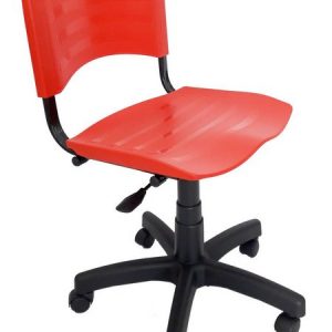 Cadeira caixa convencional – espuma injetada com revestimento em tecido ou courvin. Base giratória com apoio de pés reguláveis e sapata fixa. Várias Cores.