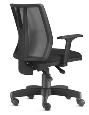 Cadeira giratória Addit – Conjunto de encosto em tela (permite troca térmica) e assento com espuma de alta densidade – adaptável ao corpo. Ajuste de altura e inclinação do encosto, ajuste de altura do assento e braços. Em tecido – Várias Cores.