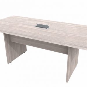 MESA COM TAMPO CONFECCIONADO EM BP 40mm (engrossado) COM FITA DE BORDA 2mm; PÉS CONFECCIONADOS EM BP 25mm COM FITA DE BORDA 1mm; SAIA CONFECCIONADAS EM BP 15mm COM FITA DE BORDA 1mm; PÉS COM NIVELADORES DE ALTURA, MEDIDAS: 1,35X1,35 – 1,60X1,60